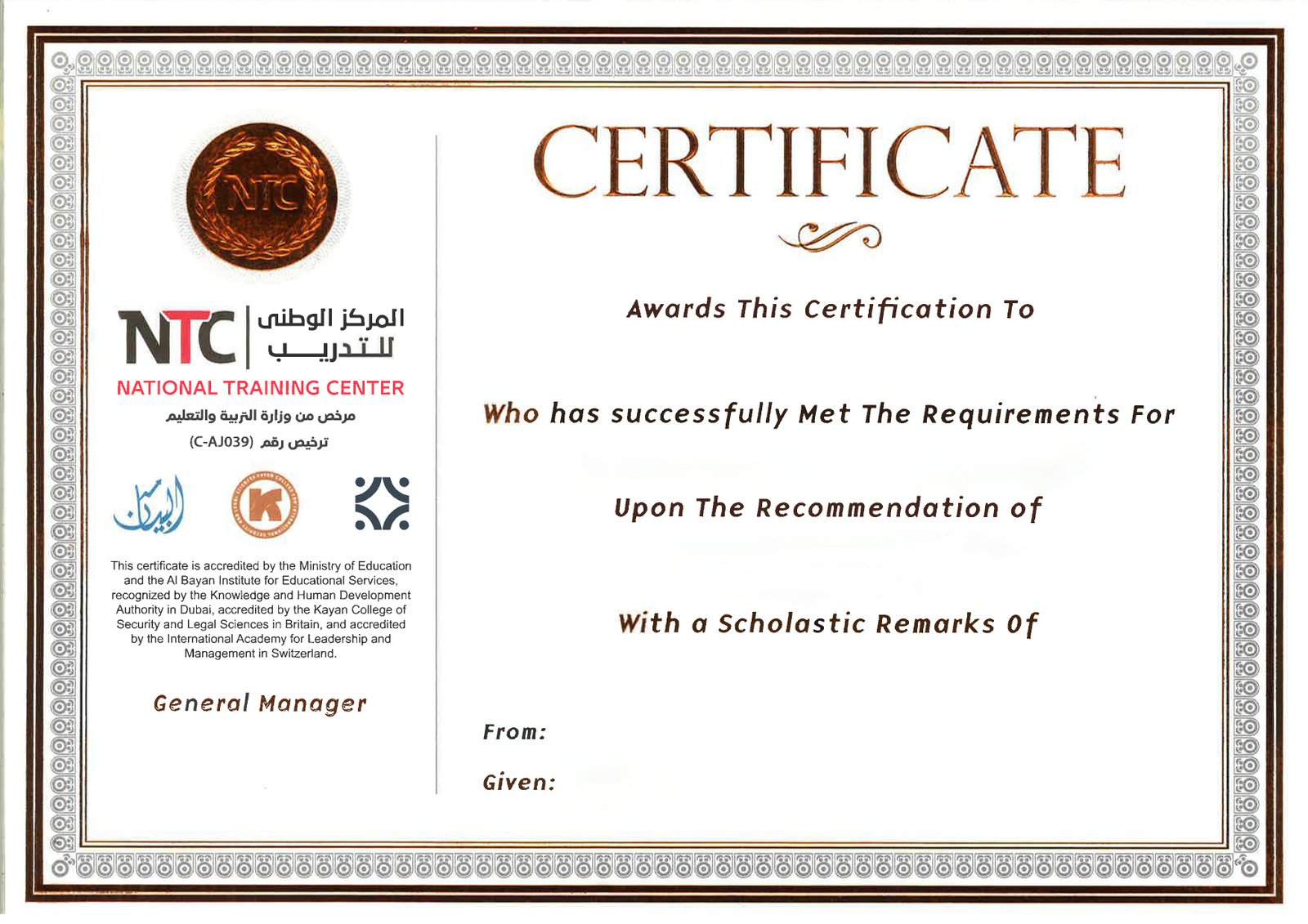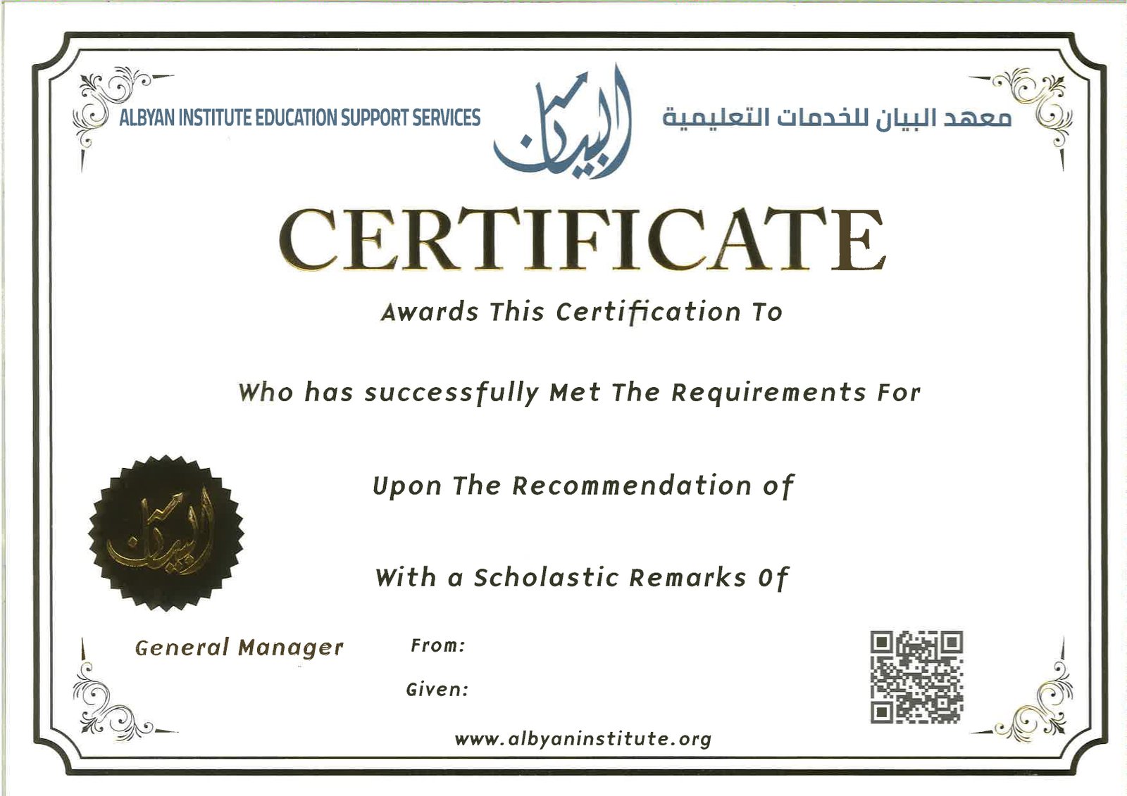تحصل على أربع شهادات من معهد البيان وبطاقة عضوية